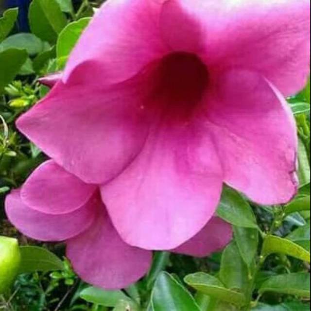 Tanaman hias alamanda pink benih bunga terompet. Berbeda dari bunga kebanyakan yang mudah dijumpai, bunga alamanda ungu ini bertahan hidup dengan cara merambat pada dinding atau tempat khusus. Seperti hal nya bunga alamanda kuning, jenis alamanda ungu ini juga berasal dari benua amerika dan memiliki bentuk yang menyerupai terompet. Harga bunga alamanda ungu ini berkisar rp 45.000 yang terbilang cukup mahal untuk tanaman hias. Tanaman hias alamanda bunga ungu cathartica cherry rippe ukuran besar.